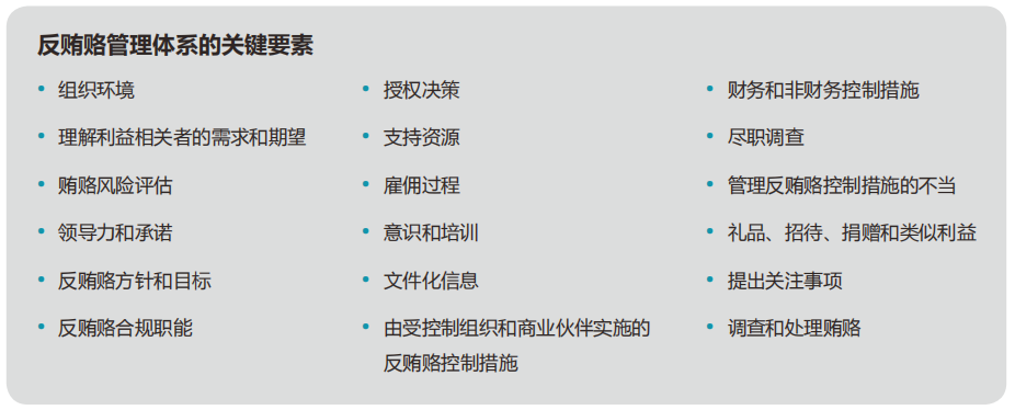1、建立一个良好的合规管理体系并控制贿赂风险的管理体系可以防止在组织各个级别发生贿赂的情况;实施ISO37001标准,做ISO37001认证,能为管理层、投资者、商业合伙伙伴、职员和其他利益相关者提供合理的消除贿赂问题的保障;