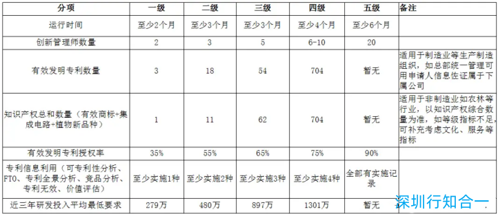 创新与知识产权管理能力分级评价共分为五个等级,由低到高分别为: