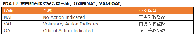 NAI表示在FDA工厂审查时,没有开出任何书面形式的不符合项(由于FDA的不合格报告表单的编号为483,FDA也将不符合简称“483”),也可以称为“零483”。