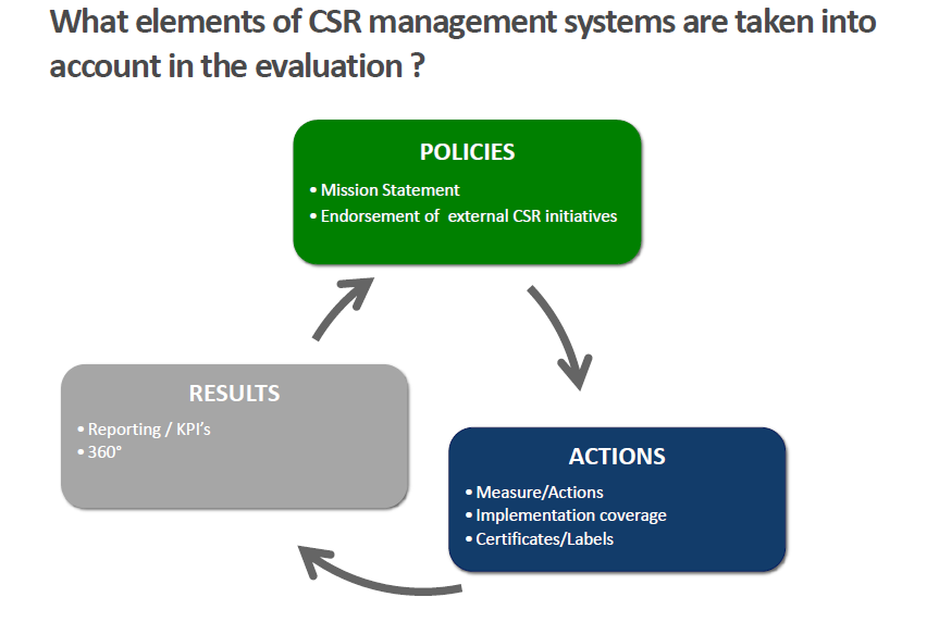 EcoVadis的CSR专家会分析您在问卷中的答案,上传的支持文件及其他企业社会责任政策证据。 EcoVadis的审核方法是基于国际标准:如全球报告倡议(GRI),ISO 26000和全球契约。