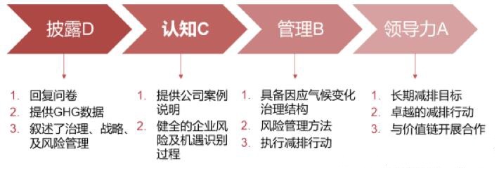 CDP评级结果:从A到D-划分为8个等级(未披露或信息不全为F)