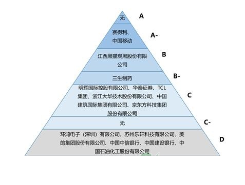 大部分企业处于认知级别(C或C-等级)或披露级别(D或D-等级);金融公司评级结果大多集中在D或D-级。