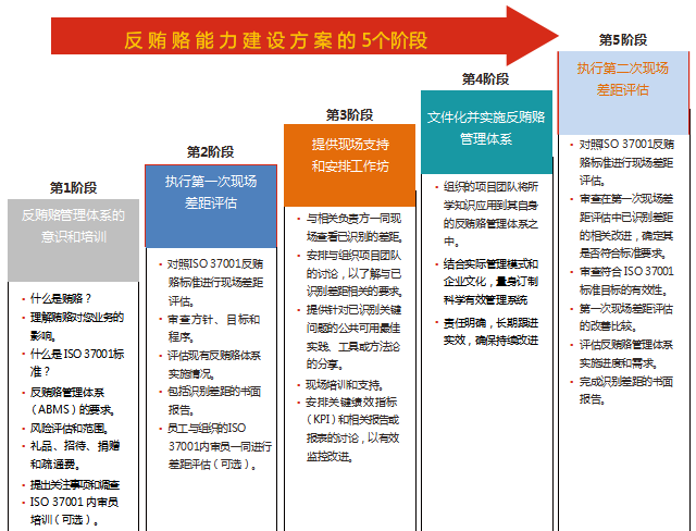 反贿赂体系ISO37001建设、辅导分为如下5个阶段: