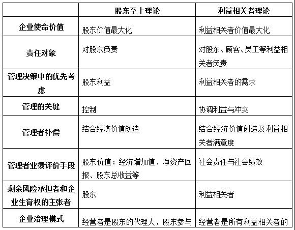股东至上理论与利益相关者理论对比
